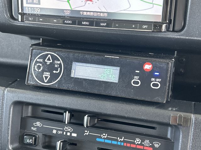 Low-temperature refrigerated truck, -25°C, Nissho Refrigeration 2 Compressor, Single-side door, Rear locking rod door, Keyless operation, Power windows, 3rd-generation Pair, Navigation/TV/ETC, 3rd-generation Pair, AW Plated Grille, 90-degree Left/Right Stoppers, Resin Slats, Internal Lights, Cargo Box, Keyless