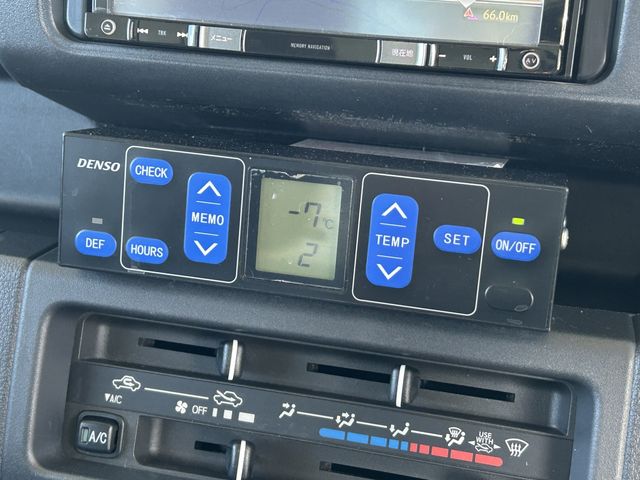 4WD FRP Refrigerated Truck, Middle Temperature -7℃, Denso Refrigeration Unit, DAIHATSU Genine Single Sliding Door, Rear One-Touch Door, 3rd Generation Navigation System/TV, Passenger Airbag, ABS 90-Degree Stopper, Resin Slats, Internal Lights, Cargo Box, Key