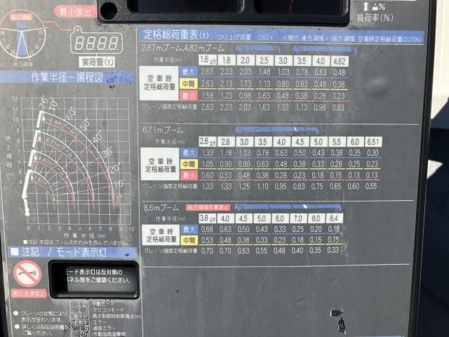 2-ton standard long high-bed Tadano 4-stage crane! 5-speed manual transmission! Rc hook-in! 3 pairs of rope holes! Rear gate chain! Support arm! Cargo bed floor reupholstered (new from Takemura). 2.63 ton lifting capacity! Odo 29,474 km!
