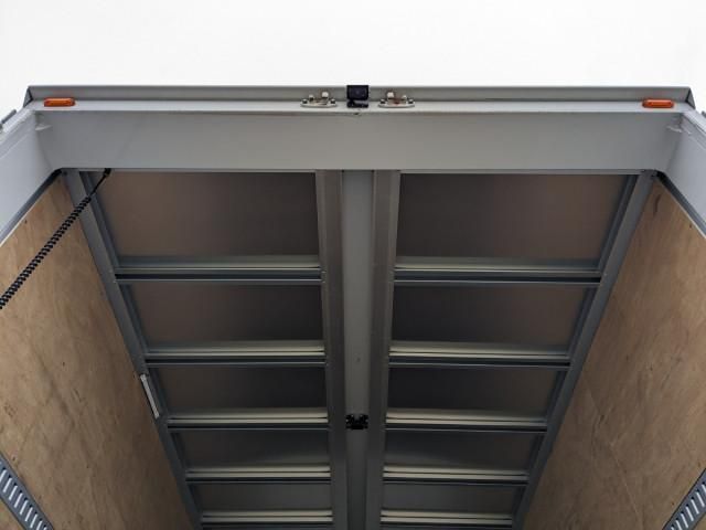 Wide! 6.2m body! Air suspension! Storage gate! 5 pairs of torii-style drawer hooks. 2-tier rashing rail. 3 internal lights. PG dimensions: Total length 1555 mm, total width 2380 mm, effective length 1290 mm, effective width 2315 mm. Max load 1000 kg. Internal remote control.