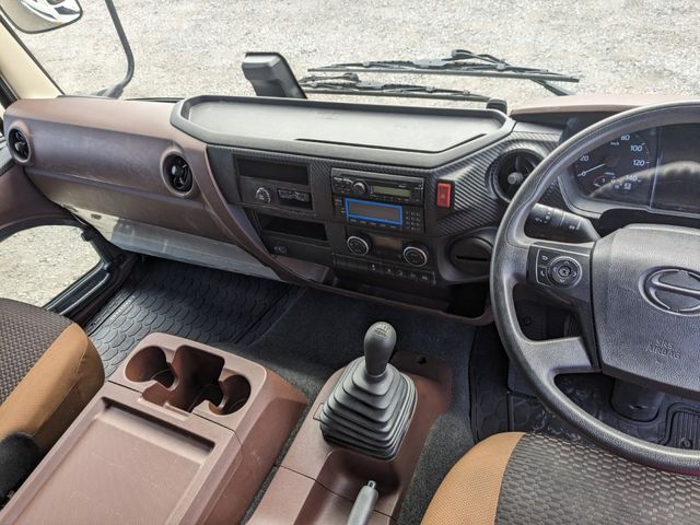 Wide! 6.2m body! Air suspension! Storage gate! 5 pairs of torii-style drawer hooks. 2-tier rashing rail. 3 internal lights. PG dimensions: Total length 1555 mm, total width 2380 mm, effective length 1290 mm, effective width 2315 mm. Max load 1000 kg. Internal remote control.