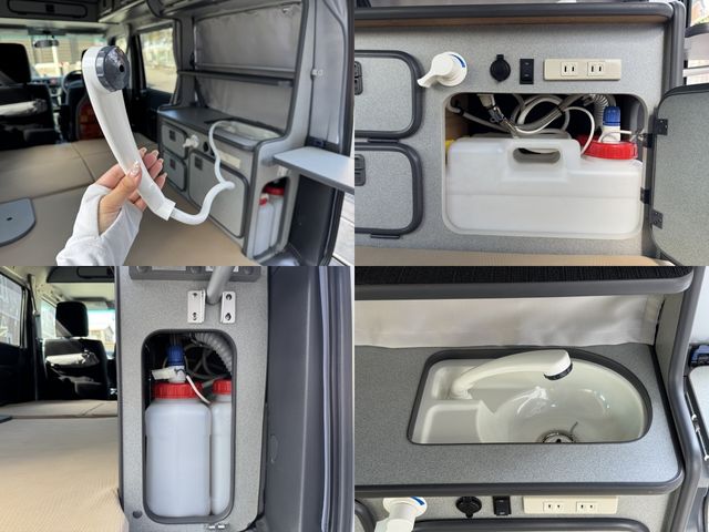 ◆ White House MYBOX ◆ Pop-up roof ◆ Side awning ◆ Sub-BT (Red Box) ◆ Mileage charging ◆ Bed + sink + shower + water supply and drainage tank ◆ FF Heater ◆ Cycle Career ◆ External power supply ◆ Full-surface curtain ◆ Cassette stove ◆ Rear gate stopper ◆ 3rdP 7-inch navigation (full TV / BT) + Back camera