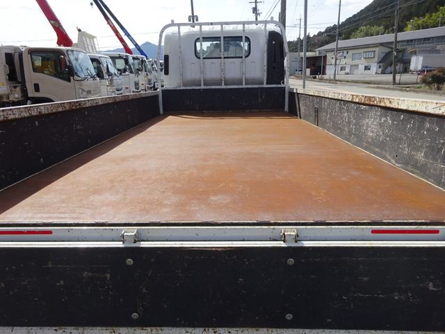 Wide and long flat body, steel floor, vinyl seats, 3-pedal 6-speed manual transmission, payload 3000kg, interior dimensions L4360xW2070xH380, collision damage mitigation, brake, reverse camera