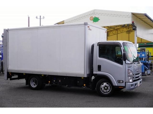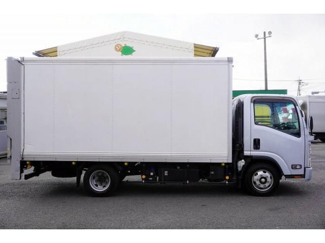 15258 Automatic Transmission (Smoother EX) Wide, Long, Fully Low-Floor Japan Fruehauf Panel Van with Lift-Up Side Doors, Shinmeiwa Vertical Power Gate (Lifting Capacity 600kg), Fog Light Lashing, 3-Tier Floor Hooks (3 Pairs), and Interior Ceiling Light Intake