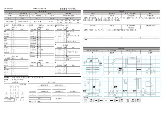 Tadano 4-speed! Rc! Full carburetor! Air suspension! 3-way opening tailgate, 1 pair of Seiko racks, 12 pairs of rope hooks on the sides/3 on the rear, 5 pairs of floor hooks, Right back stainless steel tool box, Left front steel tool box, Left back expandable tool box.