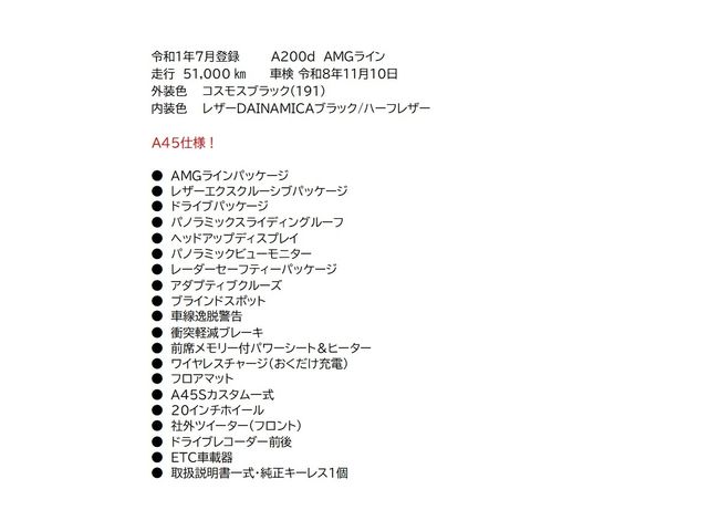 A45S specification Leather Exclusive & Drive PKG Panorama Sunroof Radar Safety PKG 20 Aw 3rd P Tweeter