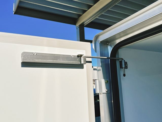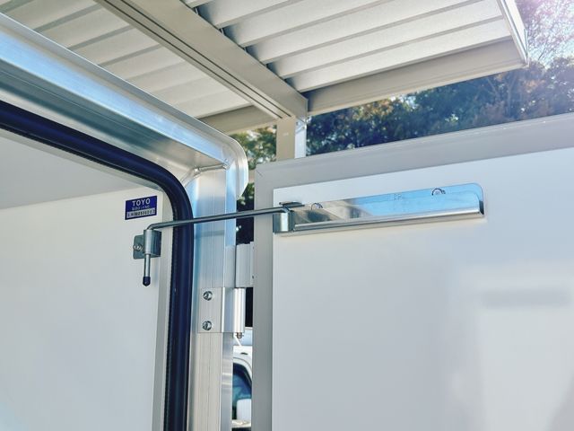 Low-temperature refrigerated freezer truck, -30°C, 50mm thin box specification, Ryoju Cold Chain 2 Compressor, Refrigeration unit, current 7-type Carry, 4AT, single-side sliding door, rear lock rod door, obstacle sensor, keyless PW, 90-degree stopper, plastic slats