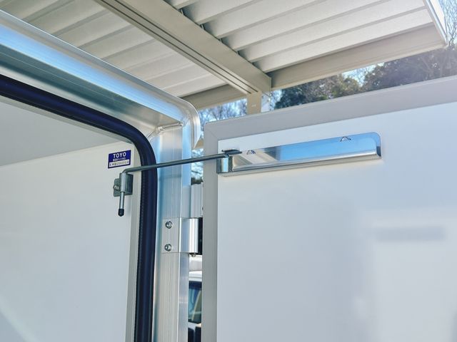 Refrigerated truck, -5°C, 50mm thin box specification, Ryoju Cold Chain 2 Compressor, 7-inch Carry, 4-speed automatic transmission, single-side sliding door, rear One-Touch door, keyless operation, PW, left/right 90-degree door stopper, plastic slats, internal light