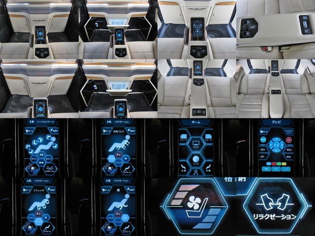 Full partition (adjustable dimming partition glass) Extra cabinet (refrigerator) Rear Entertainment System (24-inch LCD Display) ROYAL coupe lounge Dedicated VIP Air Seat Relaxation System (rear seat L/R massage function) Center Control Touch Panel Genuine wood roof panel Retractable table Reading light
