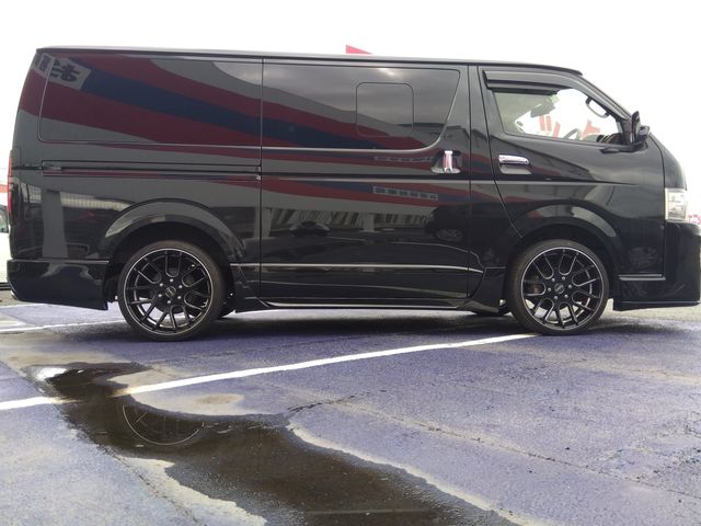 LED Head Light, DYNA Steer Aero (F, S, R, Muffler), Budd Face Bonnet, Wide Visor, DYNA Steer 20-inch AW, Half Leather Seats, Alpine 10.1-inch Flip Down Monitor, Back Camera, Rear Table
