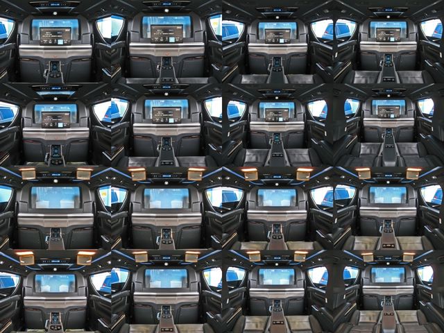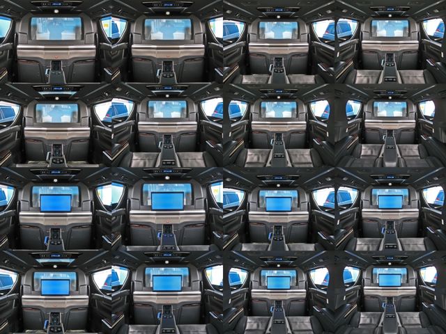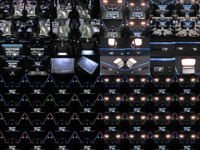 Full partition (adjustable dimming partition glass) Extra cabinet (refrigerator) Rear Entertainment System (24-inch LCD Display) ROYAL coupe lounge Dedicated VIP Air Seat Relaxation System (rear seat L/R massage function) Center Control Touch Panel Genuine wood roof panel Retractable table Reading light
