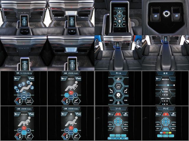 Full partition ROYAL coupe lounge Dedicated VIP Air Seat Relaxation System Rear Entertainment System (24-inch LCD Display) Center Control Touch Panel Front/Rear Call function Roof panel Rosewood wood Interior panel Vanity mirror Hanger hook TOYOTA Safety Sense Pre-Crash S Radar Cruise