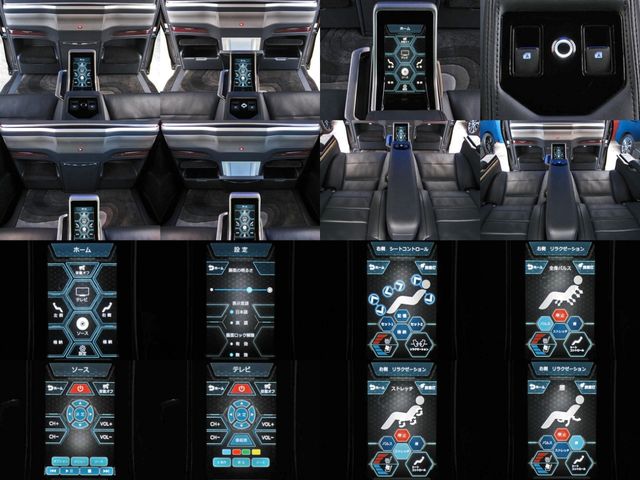 Full partition, refrigerator, ROYAL coupe lounge, Dedicated VIP Air Seat Relaxation System, Rear Entertainment System (24-inch LCD Display), Center Control Touch Panel, Front/Rear Call function, Roof panel, Vanity mirror, Large hanger hook, LED reading light, TOYOTA Safety Sense, Just Place and Charge, ITS Connect