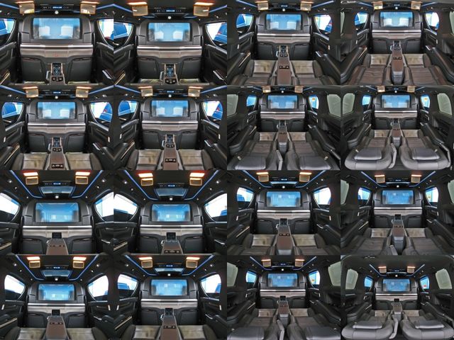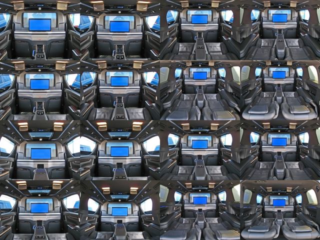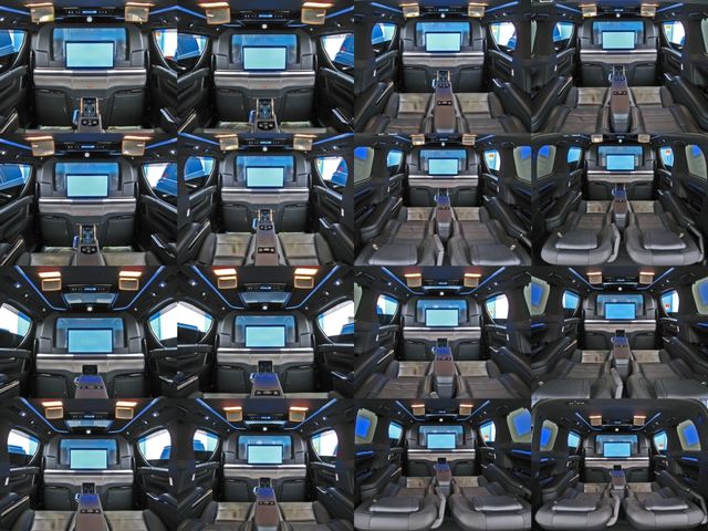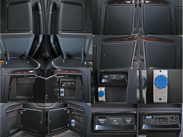 Full partition (movable dimmable partition glass) Extra cabinet (refrigerator) Rear entertainment system (24-inch LCD display) ROYAL coupe lounge Dedicated VIP Air Seat Relaxation System (rear seat L/R massage function) Center control touch panel Genuine wood roof panel Retractable table LED reading light